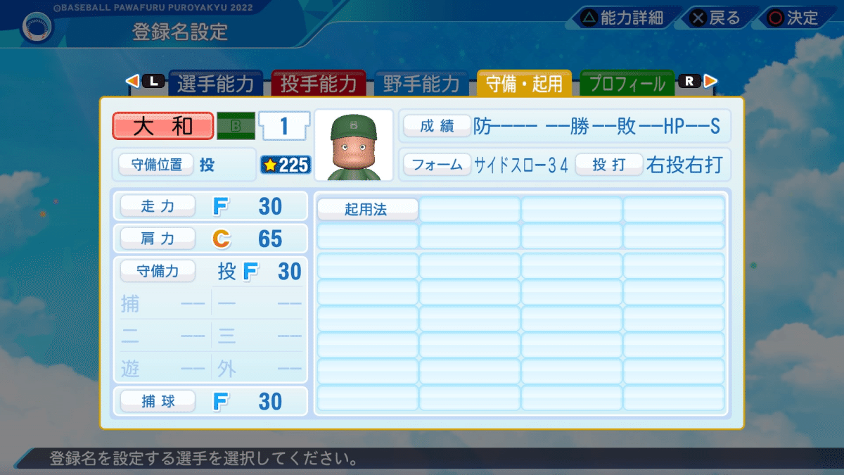 大和陽牙:選手能力詳細・査定